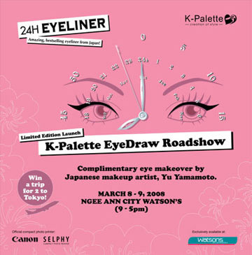 K-Palette had a roadshow event to bring in their Sakura Special Edition Eyeliner. Levitate Studios designed various marketing collaterals from booklets and flyers to the event exhibition backdrop within a very tight deadline of two weeks. Right: Advertisement and flyer design for the event.