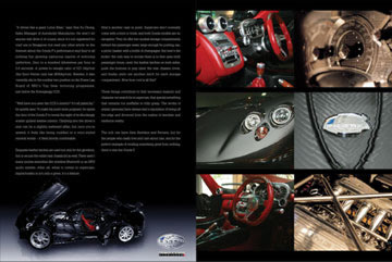 Editorial article and review on the S$3 million Pagani Zonda F supercar. Writing, photography and design by Levitate Studios. Our creative director loves cars. Right: Second and third pages of article.