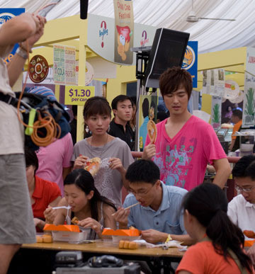 Right: Presenters from the Chinese variety program, "On the Beat", were on the scene at the opening celebrations.