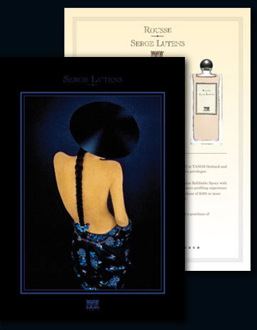 Luxasia is one of the region's largest distributors for luxury cosmetics and fragrances. Right: Design and copywriting for Serge Lutens direct mailer.
